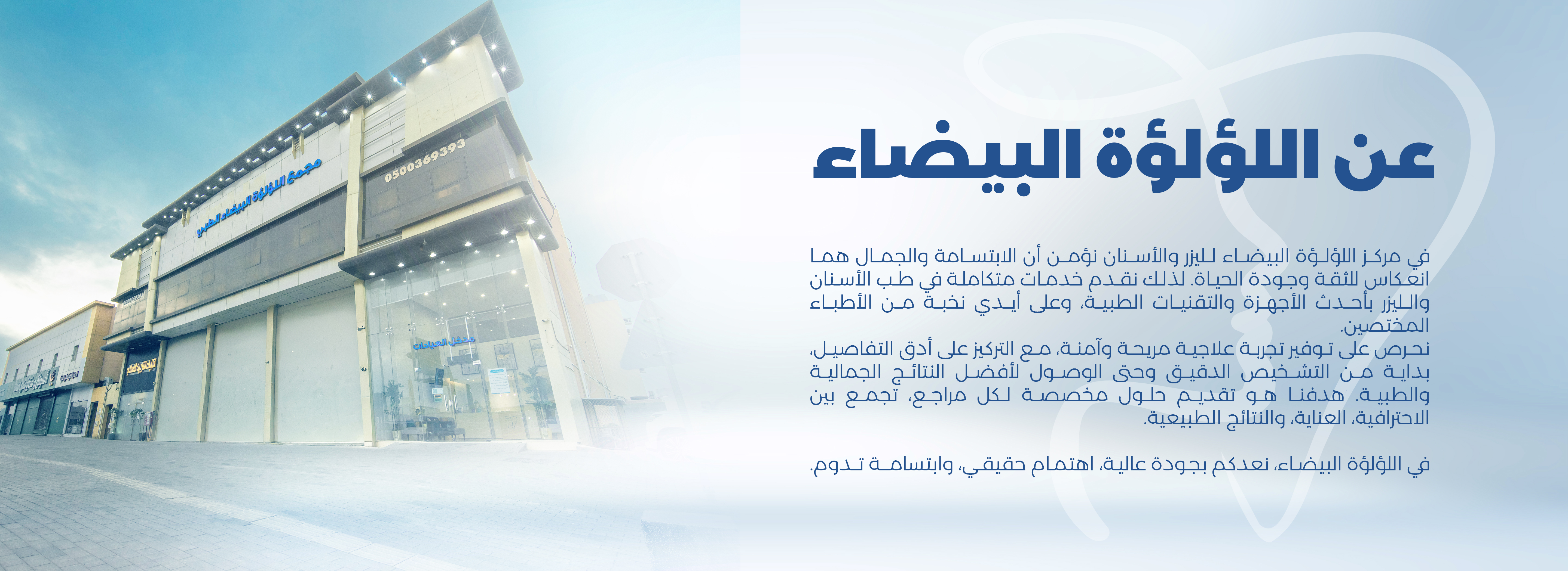 تقديم رعاية طبية وتجميلية شاملة تعتمد على الجودة، الأمان، والاحترافية، مع الالتزام بأعلى المعايير الأخلاقية والطبية. نسعى في White Pearl إلى بناء علاقة طويلة الأمد مع عملائنا، قائمة على الثقة والشفافية، من خلال فهم احتياجاتهم بدقة وتقديم حلول فعالة تضمن نتائج طبيعية ومستدامة